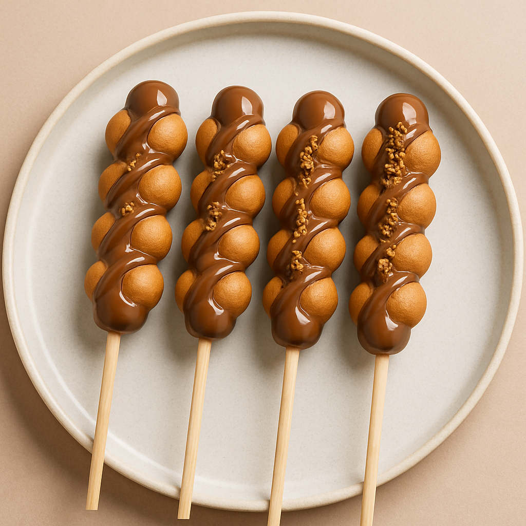 Le Bar à Bubble Sticks revisite la célèbre bubble waffle en version stick : une douceur croustillante et moelleuse à la fois, nappée de chocolat ou de caramel, facile à déguster et irrésistible pour toutes les générations.